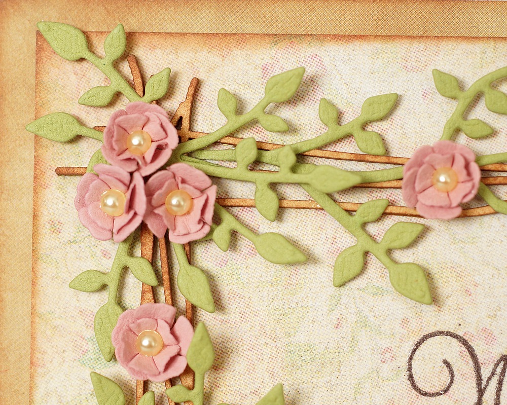 Na koniec postanowiłam wykonać skromną delikatną kartkę z ramką z gałązek. Szczerze polecam tą serię, świetna odmiana od tradycyjnych ozdobnych kształtów.